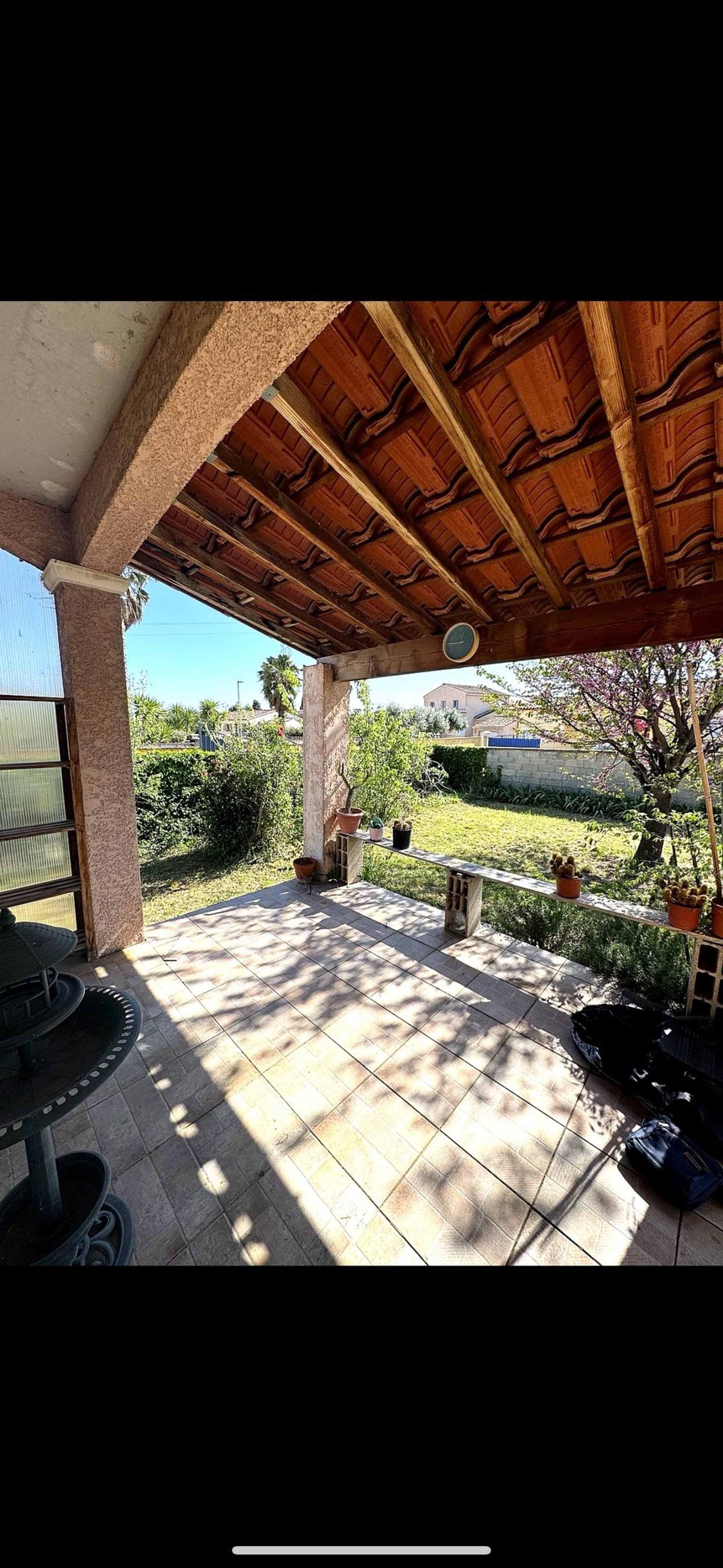 À l’extérieur, la propriété s’étend sur une parcelle d’environ 500 m², entièrement clôturée.